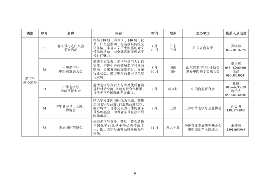 (二)4大主题活动。商务部将搭建平台、汇聚合力,组织地方商务主管部门、专业机构、新闻媒体、电商平台、专家学者、老字号企业共同参与,全年组织开展35场形式多样、内容丰富的重点活动。