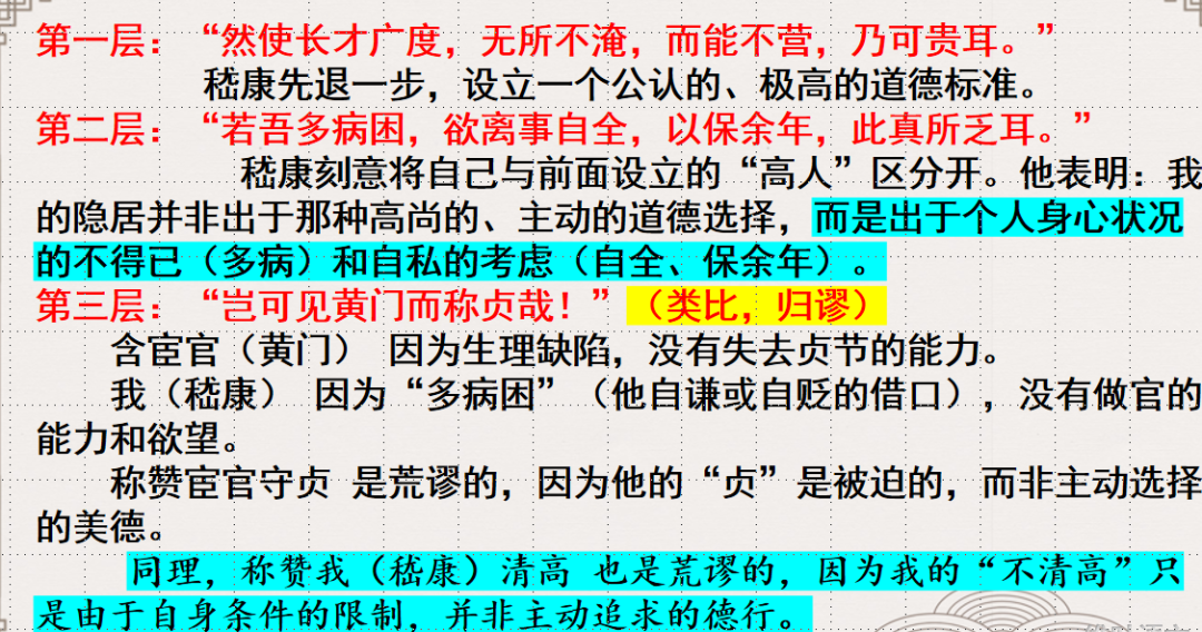 对于“岂可见黄门而称贞哉!”这句话不知道多少人读懂,或者推敲了。这里其实运用了类比和归谬法。