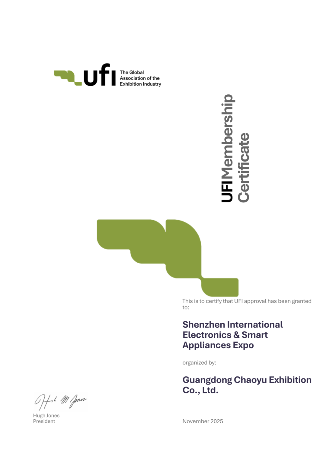 近日,IEAE深圳国际消费类电子及家用电器展Shenzhen International Electronics & Smart Appliances Expo,以下简称“IEAE深圳电子展”)通过全球展览业协会UFI认证,这标志着IEAE深圳电子展在展会规模、活动质量、服务水平等方面已经获得全球展览业协会的认可,国际影响力进一步提升。