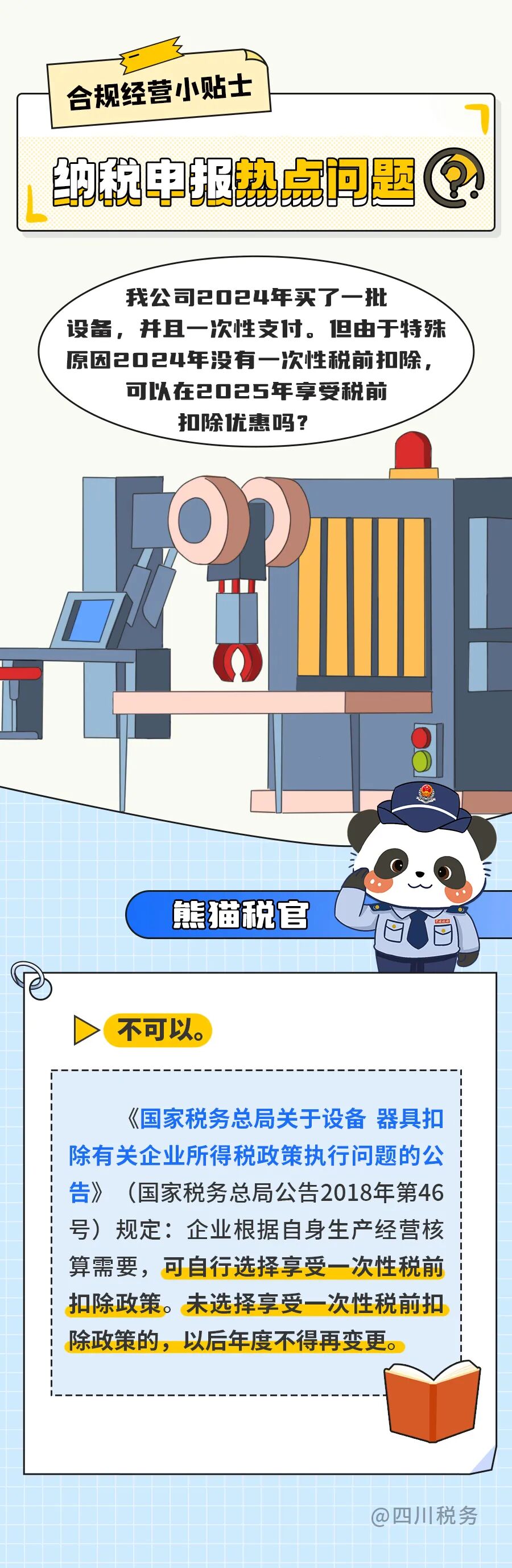 ·点击文末“阅读原文”查看:《关于设备器具扣除有关企业所得税政策执行问题的公告》(国家税务总局公告2018年第46号)