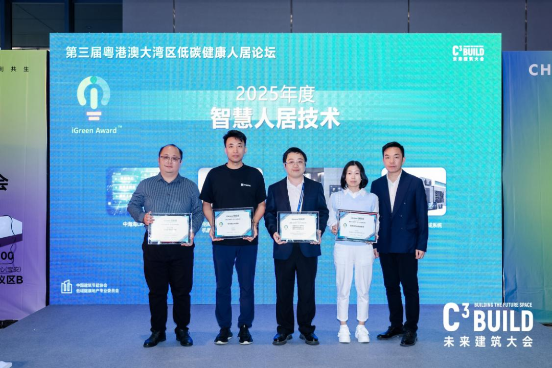 中海科技负责人作《海智创智慧人居解决方案赋能“好房子”》主题报告。以科技赋能人居建设的创新实践,介绍基于Living OS“空间智能生态平台”的一体化场景方案。中海科技推出的“海智创智慧人居解决方案”获多项行业认可:“中海柔性定制系统”“中海全屋体检系统”“中海海LINK系统”获评2025年度iGreen领航奖“智慧人居技术”“中海柔性定制系统”“中海全屋体检系统”获评2025年度iGreen领航奖“健康人居创新技术”,体现公司在智慧建筑与健康人居融合方面的技术领先性。
