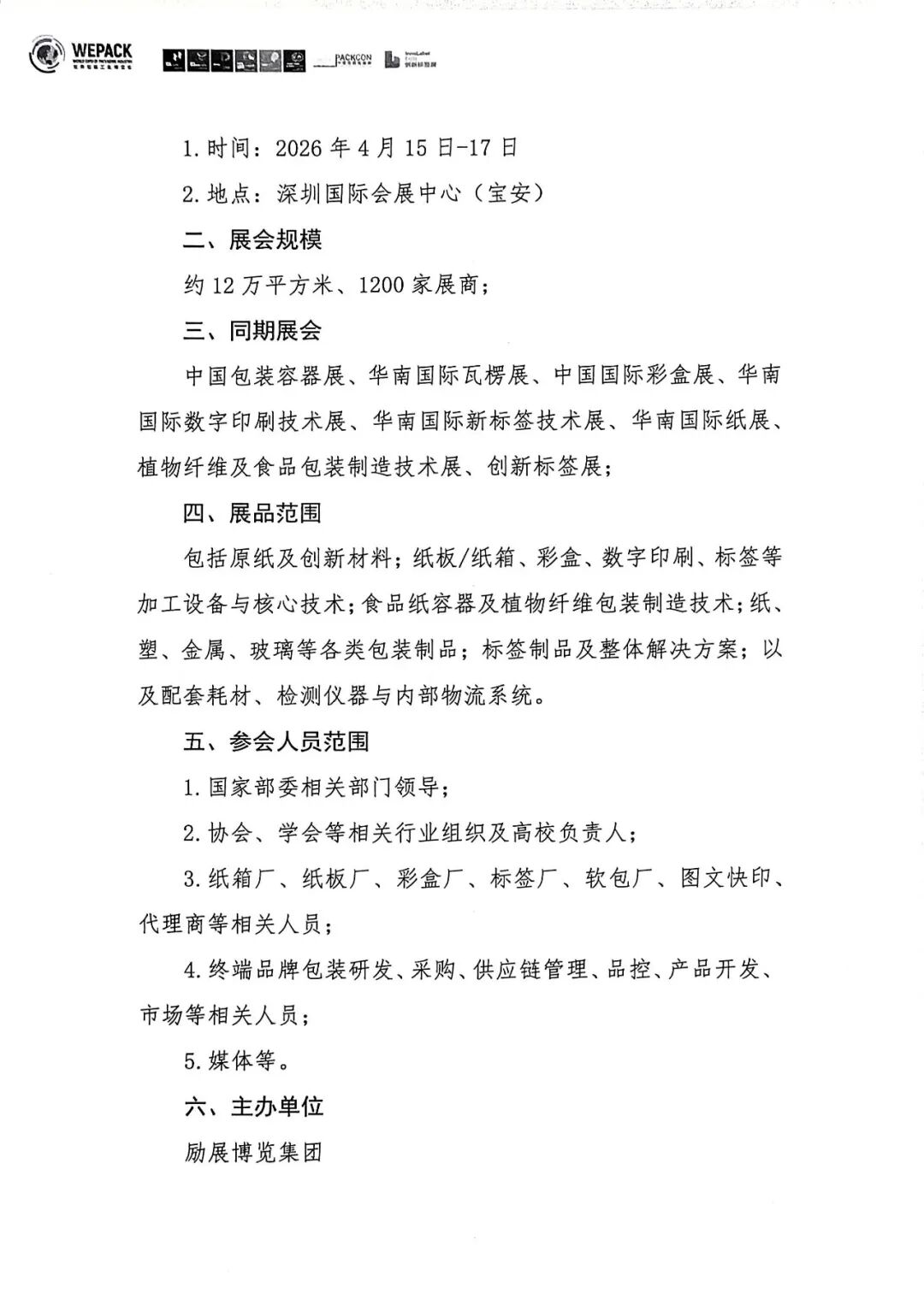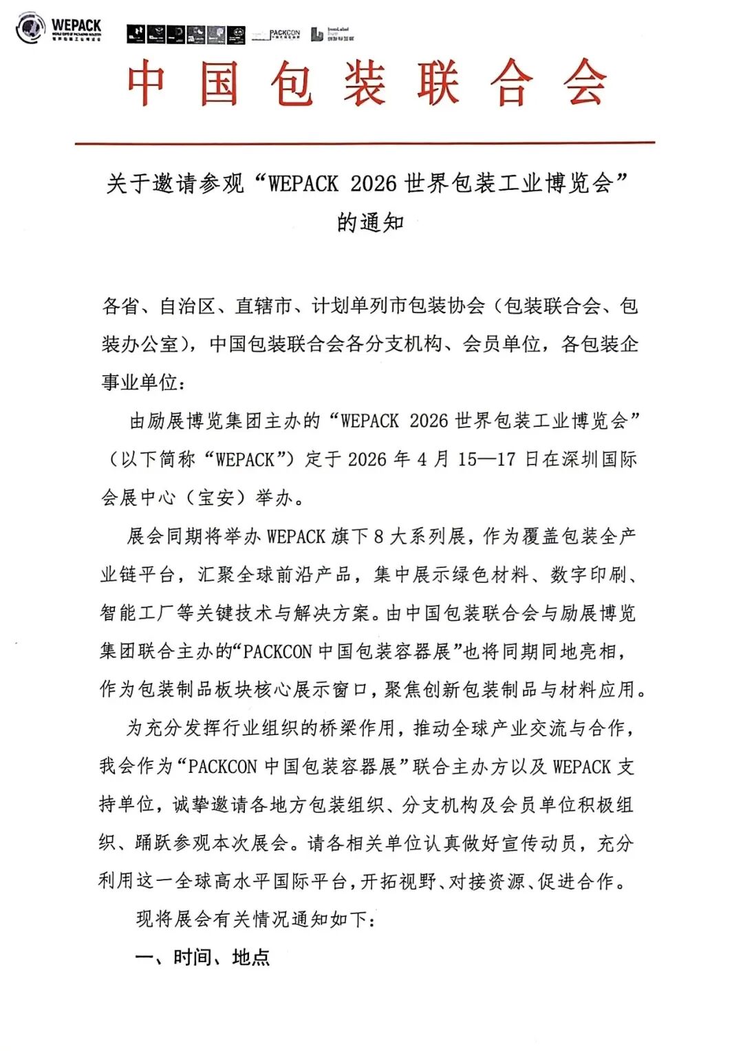 2026,马年行大运。中国包装联合会与WEPACK世界包装工业博览会组委会诚邀广大行业同仁,抓住机遇,积极报名,在深圳这片热土上共襄盛举,共铸辉煌,携手开启包装产业财富新生态!