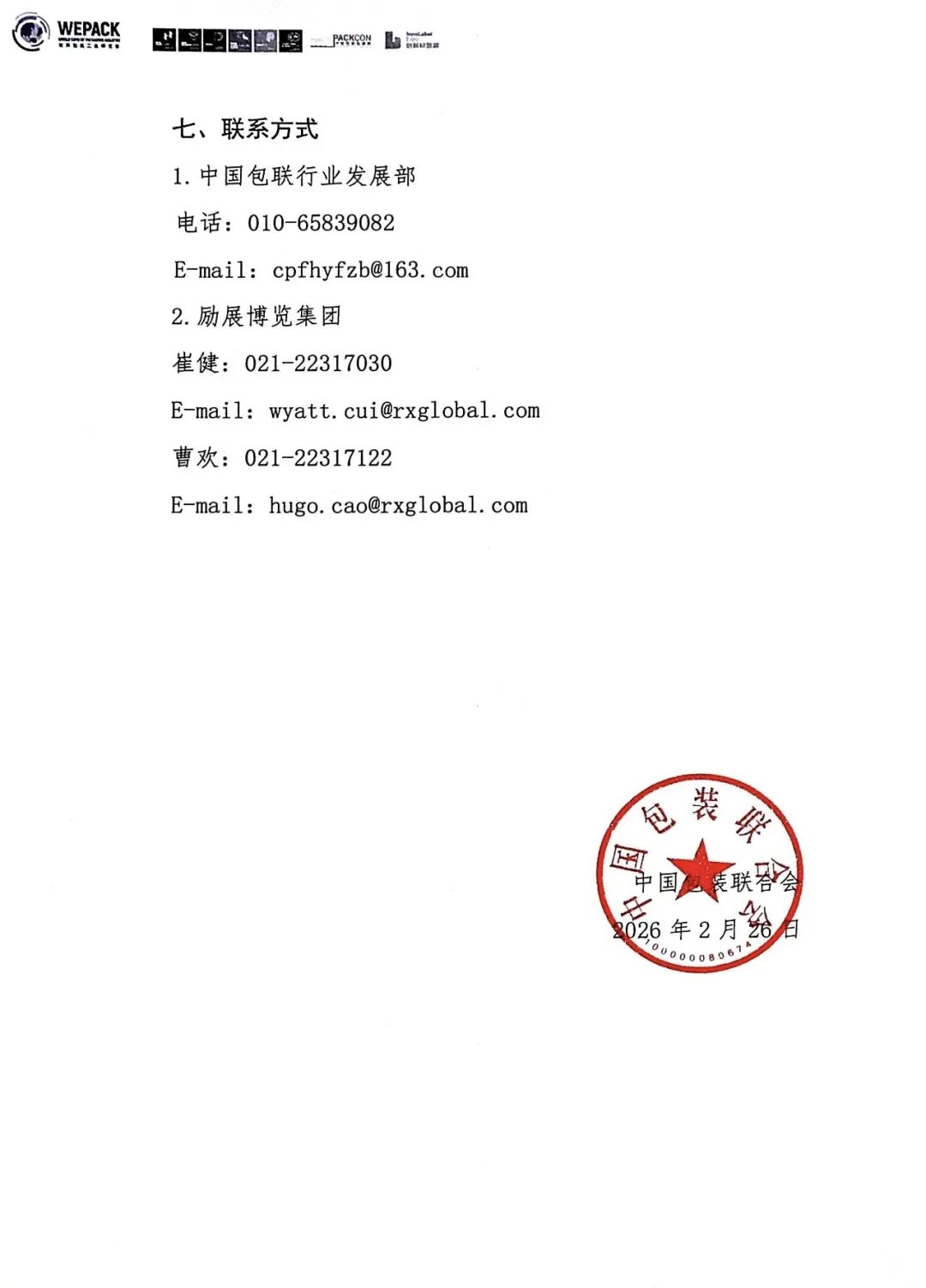 中国包装联合会作为我国包装行业的核心组织,其发布的通知为本届展会注入了强大的公信力与号召力。联合会明确指出,WEPACK 2026是展示全球包装行业新产品、前沿技术与创新解决方案的重要窗口。通过参与此次展会,各企事业单位将有机会全景式地了解涵盖原纸原料、包装加工设备、数字印刷与标签新技术、纸浆模塑及食品容器加工设备等八大包装板块的最新动态。