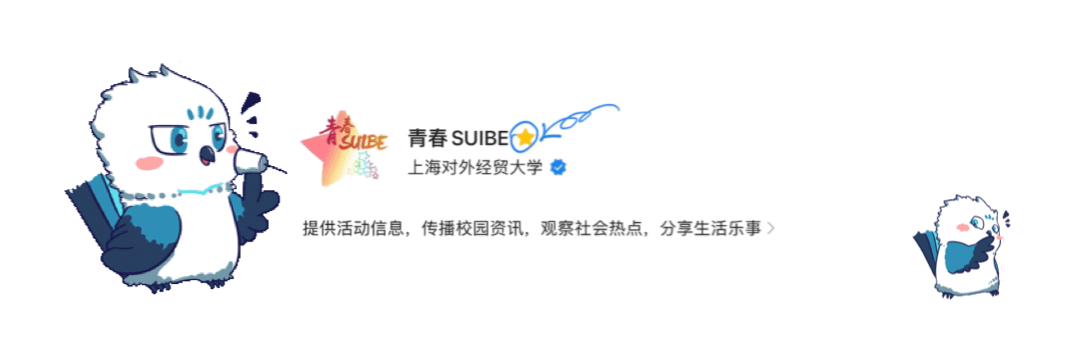 可能用到的贸大元素:啾团团、贝贝、贸小图、贸大建筑、贸大校徽、贸大校牌、贸大65周年、贸大四季、贸大花朵、贸大二十四节气、贸大思源湖、志愿无极限(以“∞”展现贸大学子在进博期间的无限志愿风采)等。