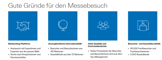 德国杜塞尔多夫国际医疗器械及设备展览会是世界知名的综合性医疗展,被公认为世界上最大的医院及医疗设备展览会,在世界医疗领域被誉为新技术和革新的标志,是医疗行业的风向标,以其不可替代的规模和影响力位居世界医疗贸易展的首位。该展会的主办方德国杜塞尔多夫展览公司(Messe Düsseldorf GmbH)是世界五大展览主办者之一,拥有逾20个各自行业里世界第一的展览品。