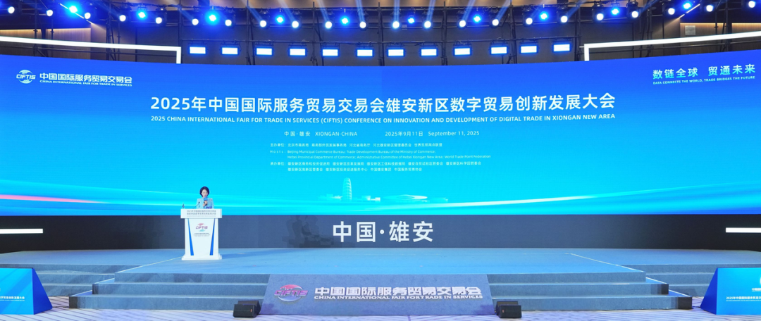 2025年9月11日下午,以“数链全球 贸通未来”为主题的2025中国国际服务贸易交易会——雄安新区数字贸易创新发展大会在雄安新区举行。本次大会由北京市商务局、商务部外贸发展事务局、河北省商务厅、雄安新区管委会、世界贸易网点联盟等单位共同主办。