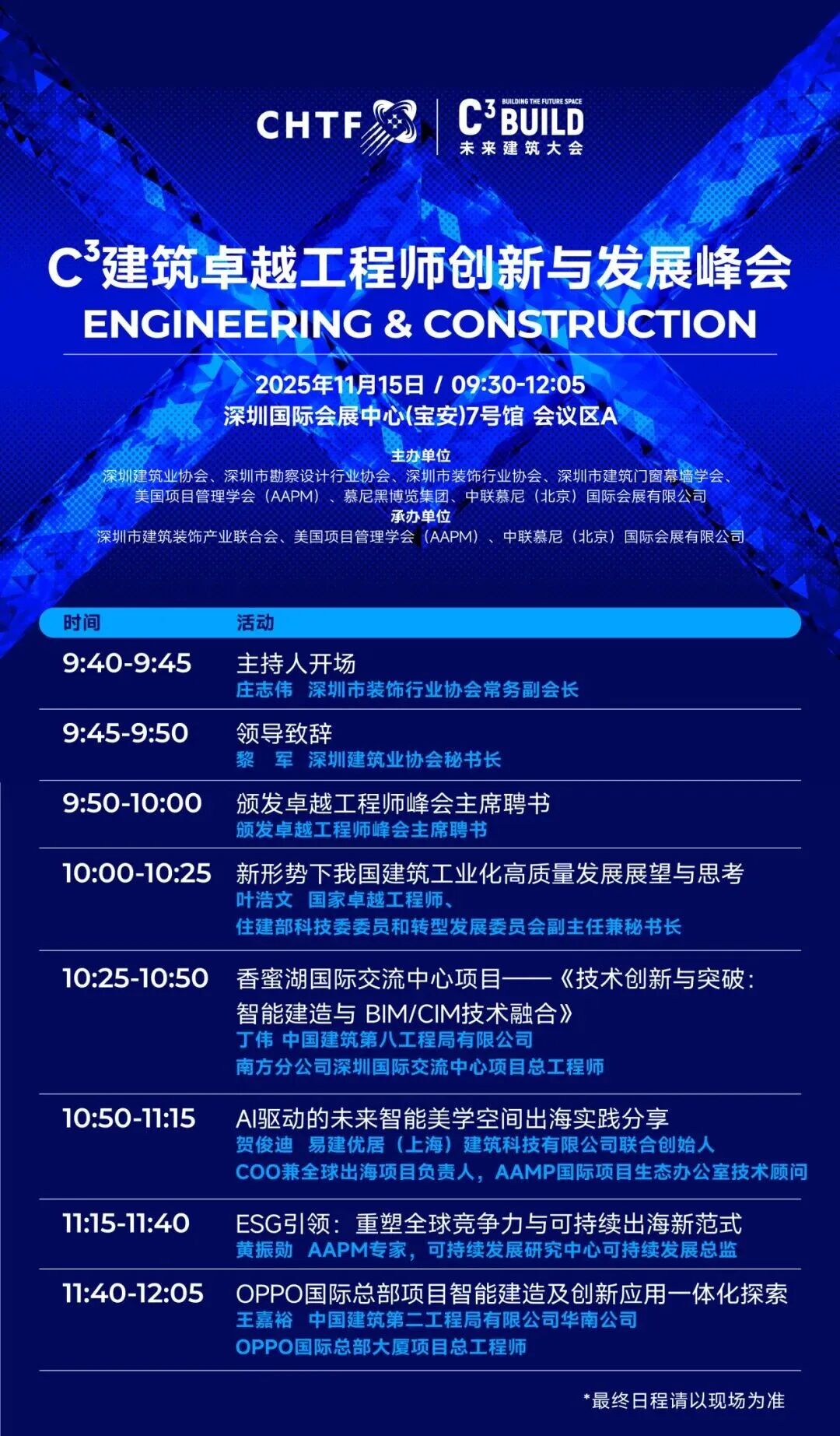 2025年11月14-16日,2025高交会-C³未来建筑大会将在深圳国际会展中心(宝安)7号馆重磅启幕!这份涵盖入场流程、展区分布、会议活动、交通路线的一站式实用指南,帮你高效解锁这场建筑全产业链盛会,赶紧收藏备用~