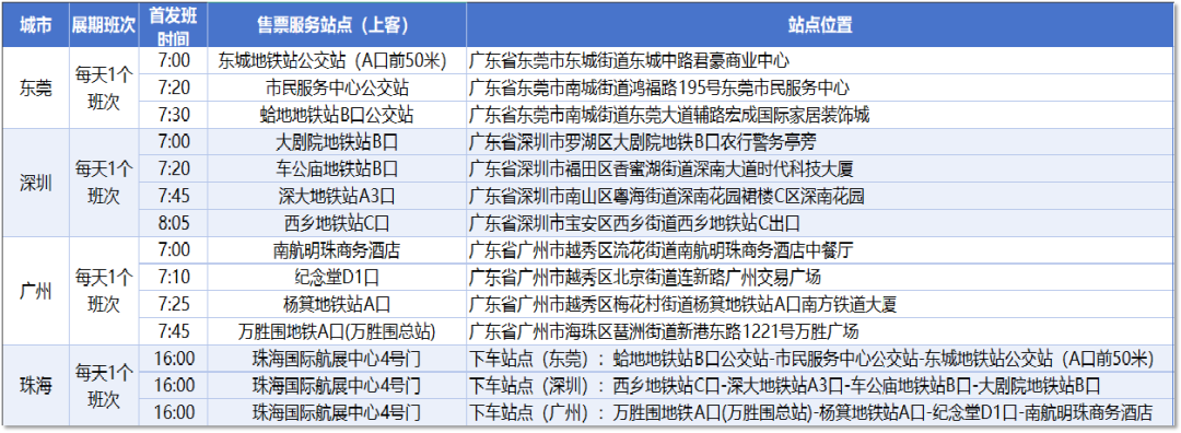 11月27—30日,珠海机场快线新增航展中心4号门停靠点,市内增开拱北、香洲、吉大、前山、横琴、南屏、唐家至航展中心4号门的往返班次,同时新增中山、江门、澳门等跨市往返线路。