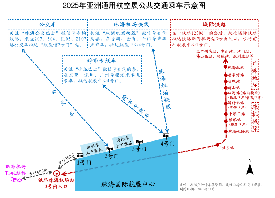 需乘坐珠海机场快线的观众,请通过“珠海机场快线”微信公众号或小程序预约购票,可直达航展中心4号门。