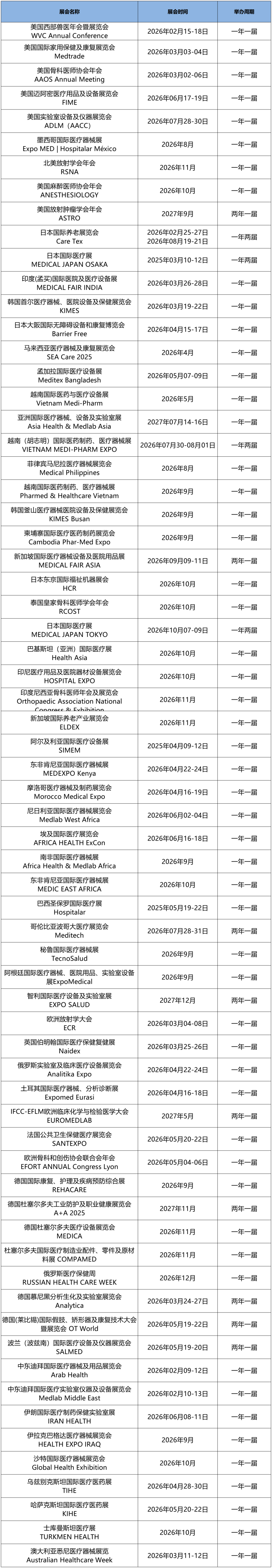2026年全球医疗器械展会计划表