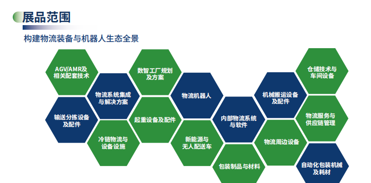 展览范围物料搬运技术、仓储技术与物流系统:物流系统集成、物流机器人、货架等仓储技术与车间设备:输送分拣设备及配件、周边设备等物流服务与外包:供应链管理及软件等内部物料系统与软件、交通工程、装载技术、其他