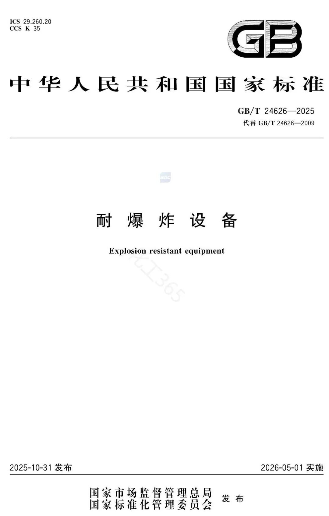 关注公众号后台留言GBT 24626-2025 耐爆炸设备