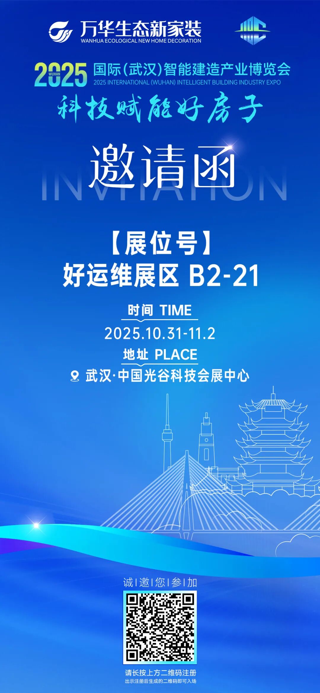 由中建三局、华为、清华大学土木水利学院单位联合主办2025国际(武汉)智能建造产业博览会将于2025年10月31日至11月2日于武汉·中国光谷科技会展中心盛大开幕,万华生态新家装集团将亮相好运维展区B221号展位,重点呈现与中建三局合作项目的整体卫浴、整体厨房样板产品以及无醛装配式内装解决方案等创新成果。