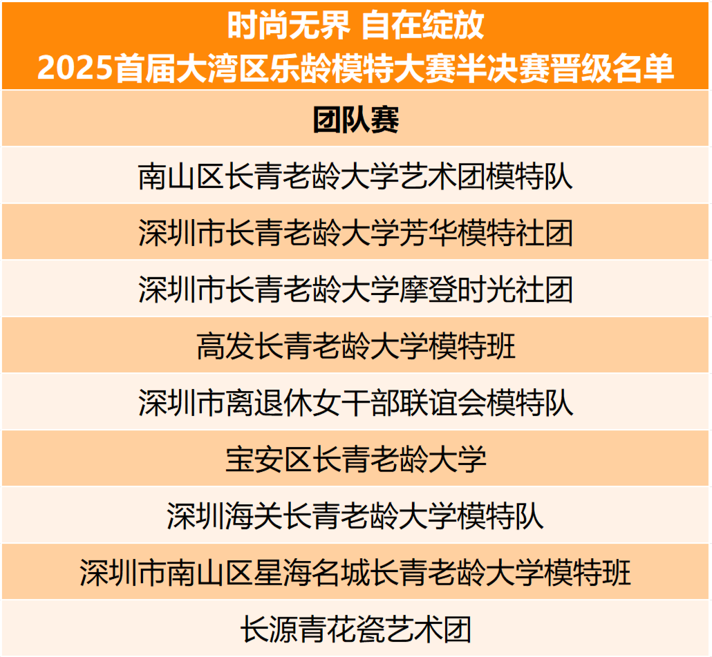 “时尚无界 自在绽放”2025首届大湾区乐龄模特大赛半决赛在深圳广电演播厅燃炸启幕!这场银发时尚盛宴,自启动就圈粉无数!千余名大湾区选手踊跃报名,历经多轮海选角逐,最终23支团队+103位个人共计近500位“银发潮人”强势登陆半决赛舞台~ 白发不是岁月痕迹,而是自带光芒的“银龄桂冠”,他们步履铿锵、气场全开,用实力打破年龄焦虑,重新定义乐龄生活的潮流天花板!