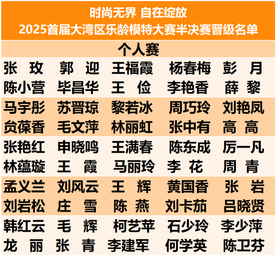 半决赛的精彩落幕,只是大湾区乐龄时尚故事的序章!12月23日,总决赛一触即发,更燃对决、更炫风采即将上线,让我们共同期待银发潮人们续写热爱与荣光,见证乐龄生活的无限可能~