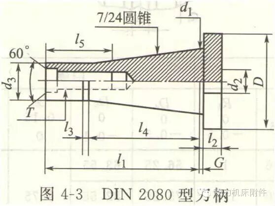 c.DIN 2080型刀柄 它是德国标准,即国际标准IS0 2583,也是通常所说的NT型刀柄,不能用机床的机械手而用手动装刀,如图4 3所示。