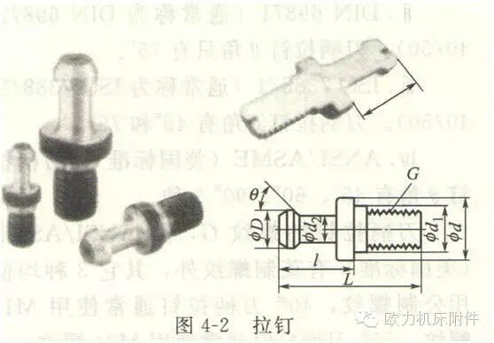 拉钉有3个关键参数:θ角、长度Z及螺纹G,如图4—2所示。根据3个关键参数的不同,不同刀柄配备的拉钉也不同。拉钉还有是否带内冷却孔之分。