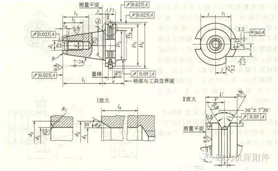 7:24工具圆锥柄。这类锥柄不自锁,换刀比较方便;比直柄有较高的定心精度与刚