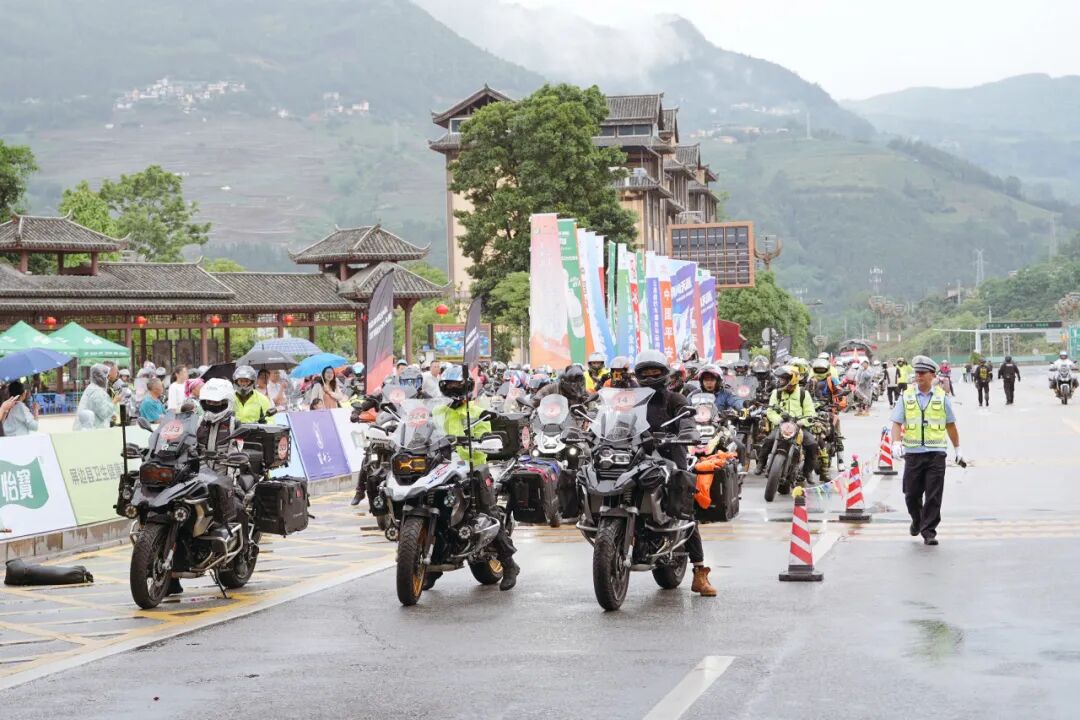 参赛组别按排量分为 500cc 以上组(含)和 500cc 以下组,采用 4 人团队制。巡游后车队驶向起点荔源村,总赛程 74 公里,串联起连绵群山、葱郁森林与古朴村寨,骑行者在风驰电掣间尽览边疆乡村的自然野趣与人文风情。