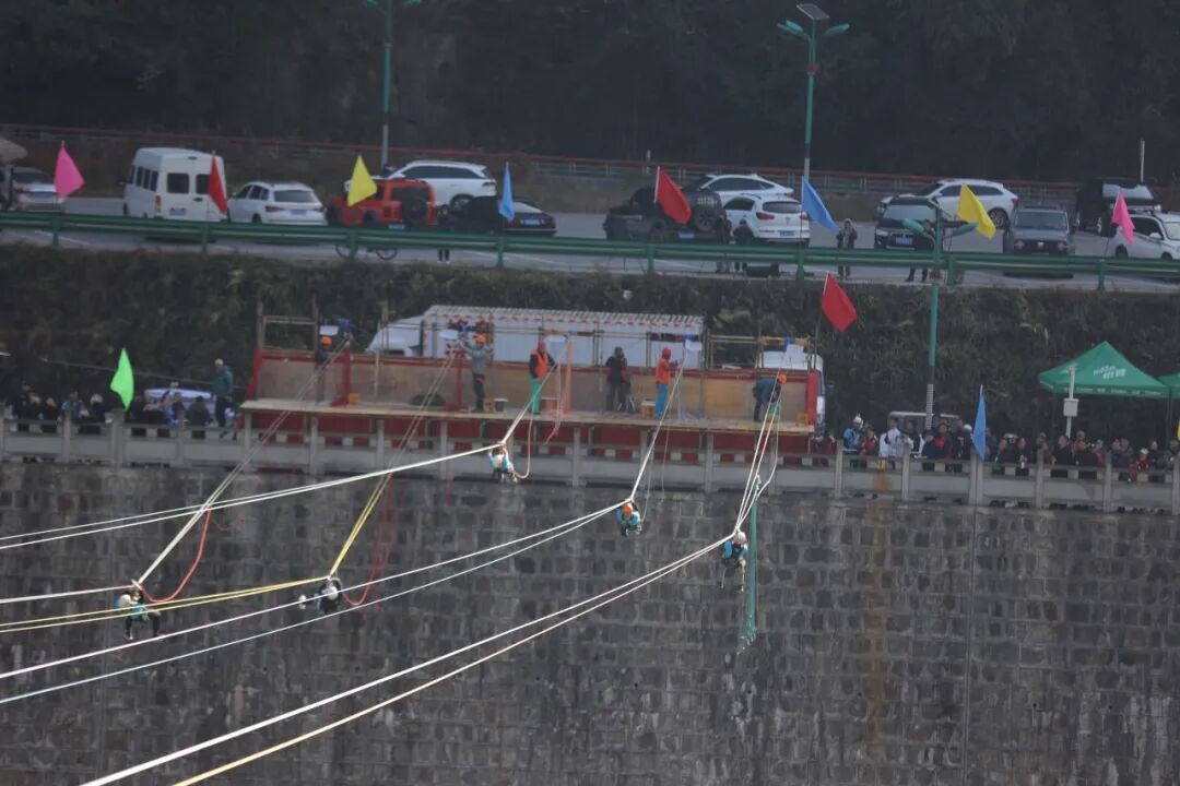 12月20日上午11点,云南怒江大峡谷首届溜索挑战赛正式启动!作为 2026 怒江傈僳“阔时”节的核心赛事之一,它与其他系列活动共同构筑起“秘境怒江·户外天堂”的品牌矩阵。这场赛事以传承为笔,将曾滋养一方、堂渐被时光尘封的传统交通方式,从历史记忆拉回现实舞台。它不仅淋漓尽致地展现出溜索这一怒江独有的交通印记与野性魅力,更集结了一众勇者,在奔腾的怒江之上上演了一场 “空中飞渡”的巅峰对决,让峡谷的风都为这场速度与胆识的较量呼啸喝彩。