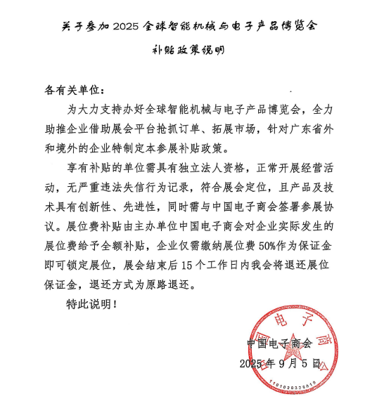 面向广东省外及境外企业,提供“先交一半,展后全返”的展位费全额补贴政策,企业最终可实现零成本参展。即刻锁定您的展位,在粤港澳大湾区的核心,共同塑造智能世界的明天。