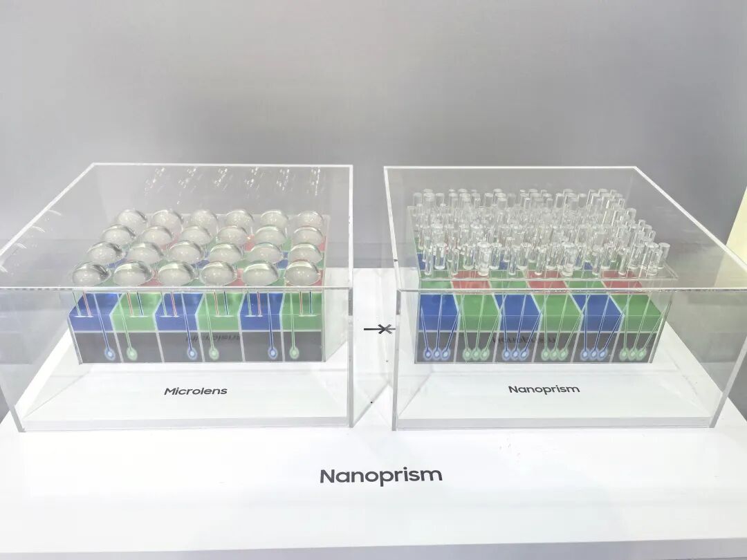 三星的展台上也有许多有意思的产品,除了游戏达人喜欢的各种装备,SSD和DRAM这样的主打产品的种类也非常丰富。CIS也展出了最新创意的Nanoprism(纳米棱镜),每个像素小于1微米的尺寸,以及用圆柱形透镜取代弧形透镜的设计,用独特的产品设计来实现一流的性能,展现出全球第二消费级CIS设计和制造企业的技术底蕴。