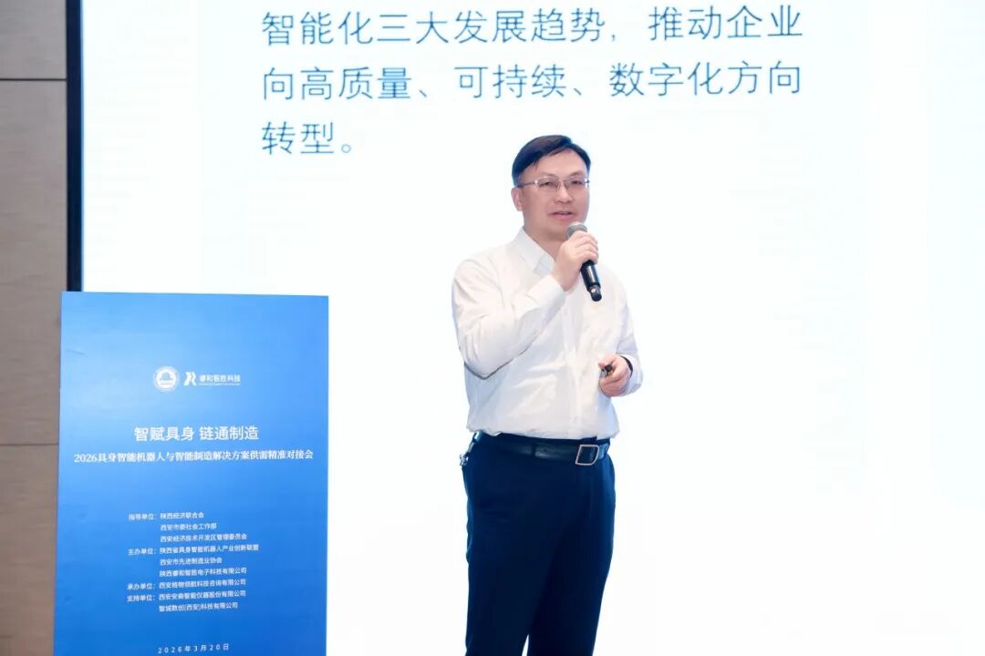 本次大会以“智赋具身・链通制造”为主题,深入贯彻落实《国务院关于深入实施“人工智能+”行动的意见》《“人工智能+制造”专项行动实施意见》,加速智能产业化,发展智能经济。会议汇聚产业创新供给侧、应用场景需求侧、生态协同服务侧各界代表260余人,共商人工智能、具身智能与制造业深度融合的新路径,共筑智能制造供需协同的新生态。陕西经济联合会会长刘迎军出席并致辞,陕西经济联合会副会长高建伟、西安市委社会工作部副部长王刚、西安经开区管委会工信局副局长任洋,以及陕西省科技厅、西安市工信局等相关处室负责人出席会议。