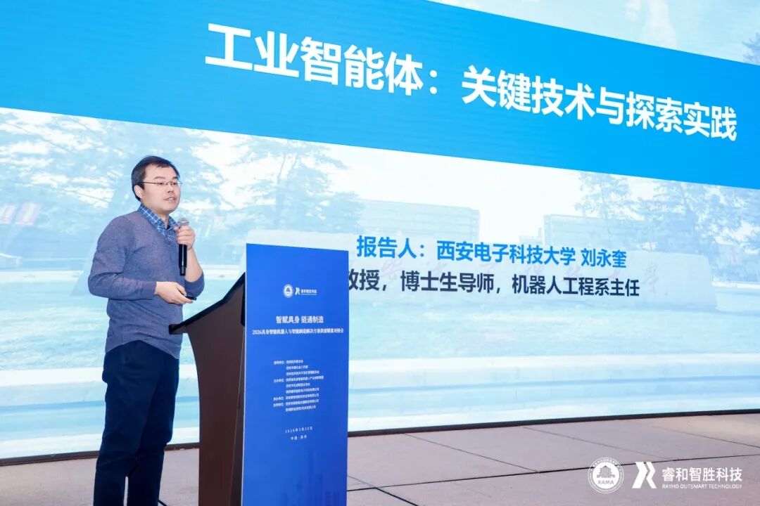 在大会主旨报告环节,西安交通大学教授、长江学者特聘教授梅雪松以《智能工厂关键技术与发展趋势》为题,解析了智能产线建设、设备智能运维等关键技术落地路径;西安电子科技大学教授刘永奎以《工业智能体:关键技术与探索实践》为题讲述了工业智能体的核心能力与其在各应用场景的实践体系;中航试金石北京软测事业部总经理郑皓天分享了《“AI+制造”政策解读及应用》,系统解读国家政策导向,并根据机遇挑战给出了务实行动指引。