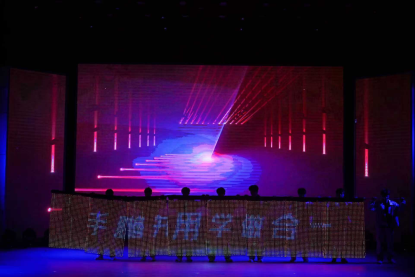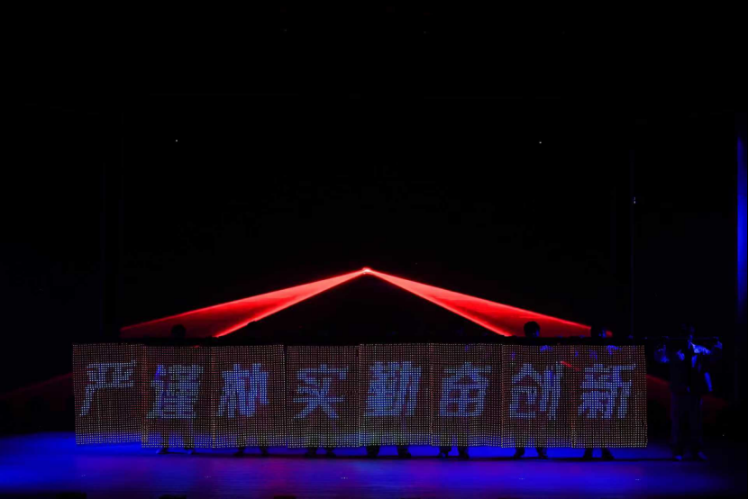 当新生们手持的LED屏拼成“严谨求实 面向创新”的字样,全场瞬间安静后又爆发出更响的掌声——这哪里是舞台特效?分明是智能制造学院“重实践、求创新”的培养理念,被2025级新生揉进了每一个像素里。连台下的专业老师都笑着点头:“这届新生,把‘专业态度’刻在DNA里了!”