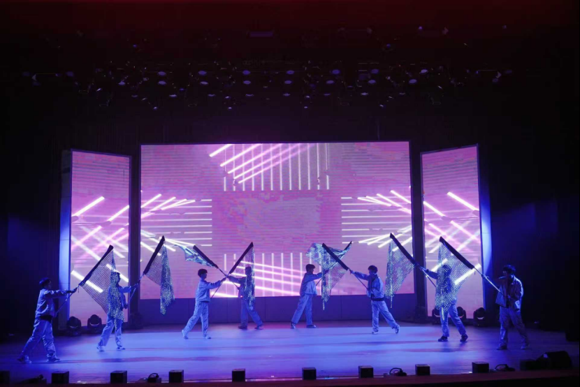 红蓝光影裹住舞台时,LED阵列的光斑跟着节奏变换,像极了实验室里跳动的传感器数据、流转的PLC程序。每一次灯光的明灭,都是这群2025级新生在说:“我们的青春,是和代码、机械臂一起发光的!”