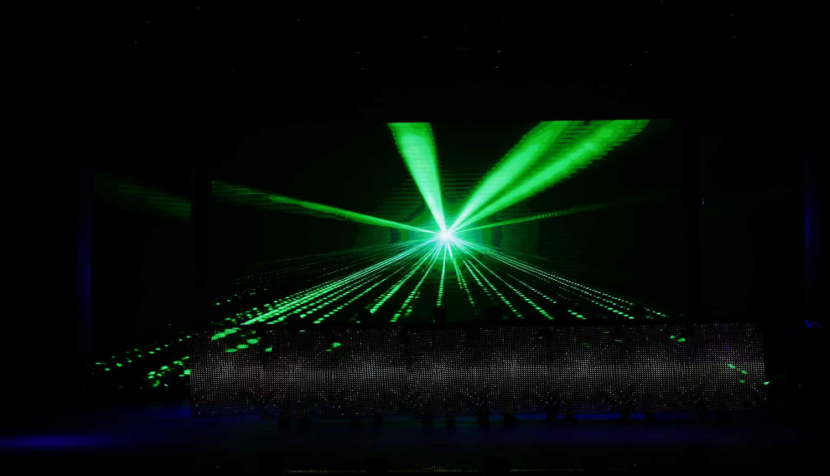绿色激光骤然划破黑暗,线条交织成层层叠叠的光路——像极了智能制造实验室里的代码流、像极了工业机器人的运动轨迹。新生们藏在光影之后,每一道激光的跃动,都像是“青春”与“科技”在偷偷碰拳,这视觉冲击力,谁看了不说“这才是工科生的舞台!”