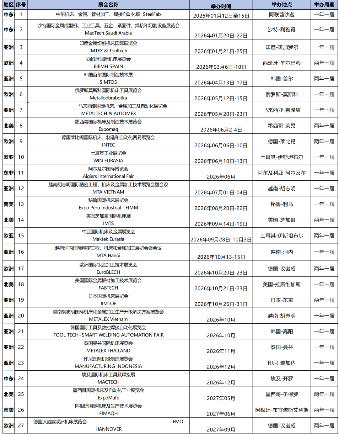 2026年全球机床展会计划表