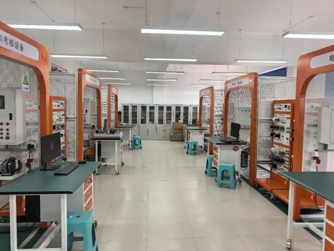 配备多类工业机器人实训室,涵盖国内外顶尖厂家的先进设备,致力于实现“工学一体、产教融合”的教学模式。