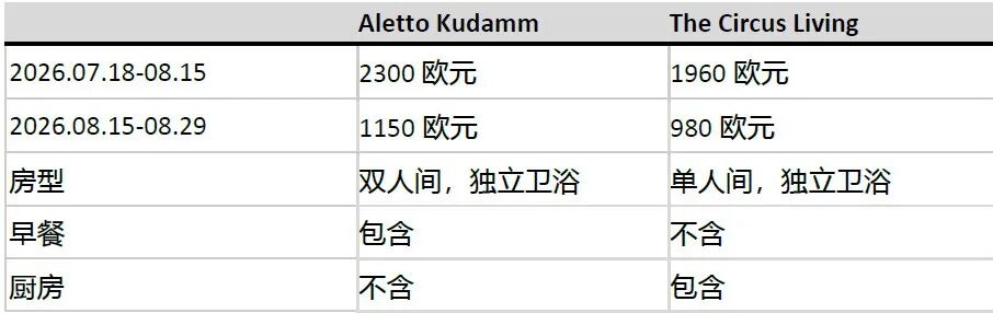 学员可选择柏林工业大学方安排的住宿,以下是可选择的住宿: