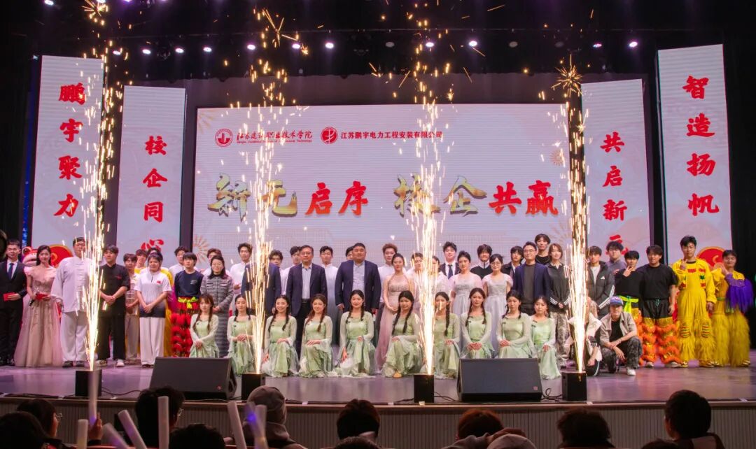 12月26日晚,智能制造学院与江苏鹏宇电力工程安装有限公司携手举办的“新元启序,校企共赢”2026年元旦晚会,在学院会堂璀璨绽放。校企双方领导、师生与嘉宾欢聚一堂,以歌舞告别旧岁,以同心共赴新程。这是一场融合才艺、温情与愿景的盛会,更是一次产教融合、携手前行的生动写照。