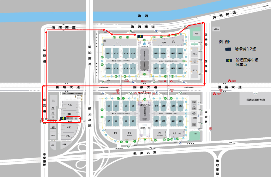 本次车展提供两条免费摆渡车路线,具体详情如下: