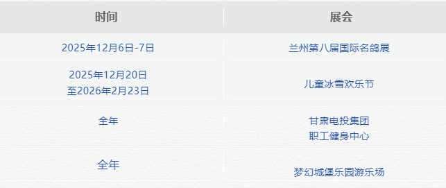 甘肃展览十二月排期