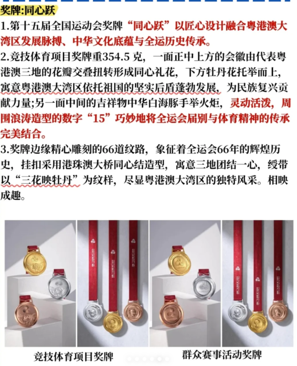 会歌:《气势如虹》双版本上线,王一博携手三地歌手演绎,歌词超燃"冲冲冲,看我气势如虹" - 奖牌:"同心跃"设计藏巧思,木棉、洋紫荆、莲花花瓣环绕牡丹,完美诠释三地同心 赛事亮点速览 - 举办地:广东+香港+澳门19城联动,史上首次三地合办 项目涵盖:34项竞技赛事+23项群众赛事,从霹雳舞到武术全覆盖 科技彩蛋:机器人火炬手亮相传递,可燃冰"源火"超有排面 现在已经能感受到大湾区的运动氛围了,不管是去现场为全红婵、赵继伟等运动员呐喊,还是蹲直播看赛事,这场全民盛宴都值得蹲守!你最期待哪个项目?