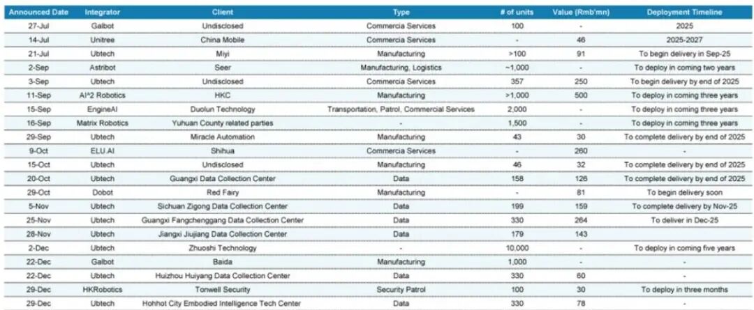 2025年下半年,中国市场宣布的人形机器人相关订单总额超过20亿元人民币 。尽管这些订单大多数用于研发、数据收集或娱乐目的,而非真正的商业需求,但这表明市场正在为大规模部署进行积极准备和数据积累 。