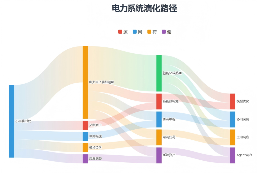 电力系统的发展正沿着一条由新能源渗透率驱动的清晰路径演进,从"机电化时代"经过"电力电子化加速期",最终迈向"智能化成熟期"。根据我们的研究分析,电力系统的演进可以划分为三个关键阶段: