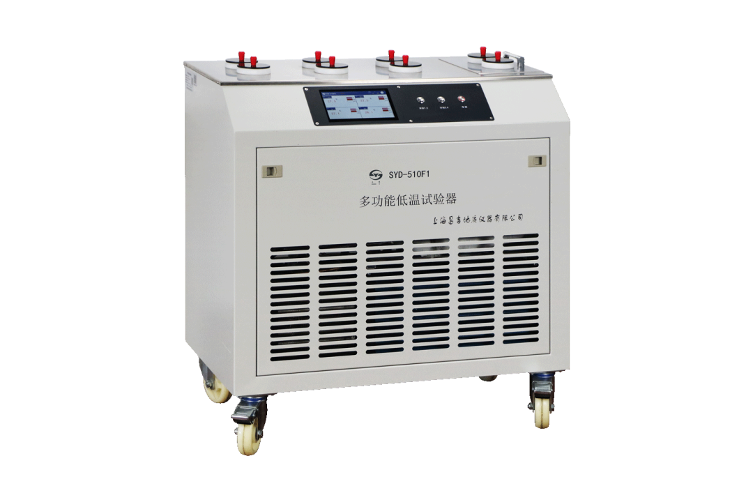 SYD-510F1 多功能低温试验器是按照中华人民共和国标准 GB/T 510《石油产品凝点测定法》、GB/T 3535《石油倾点测定法》、GB/T 6986《石油浊点测定法》规定的要求设计制造的,适用于按上述标准所规定的方法测定石油产品的凝点、倾点、浊点等指标。