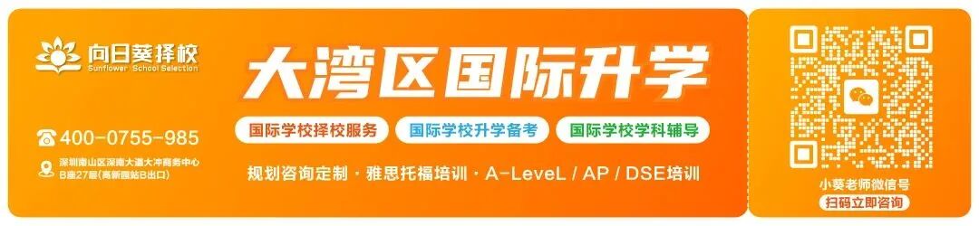 最后给家长提个醒:2026 年大湾区国际校入学考全提前,优质生源抢跑成常态,择校规划一定要趁早!不用盲目跟风冲头部,适合孩子的才是最好的。如果暂时没赶上顶流校的班车,大湾区还有不少特色优质校可选,找对赛道,一样能走出优质升学路。