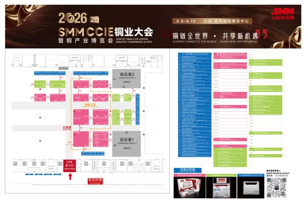 迈入2026年,全球铜产业正处于深刻调整期。为此本届SMM CCIE铜业大会暨铜产业博览会为特色展+会形式,10000+专业观众流量,120+展台,5000+㎡展览面积;和铝展、新能源展同期同地举办,展馆互通,一票通三展,共享40000+人流量; 全产业链覆盖:铜矿山、冶炼,铜加工、贸易,再生回收、终端应用(线缆、电子、电气、汽车零部件、半导体、AI、机器人、新能源、光伏、储能等)