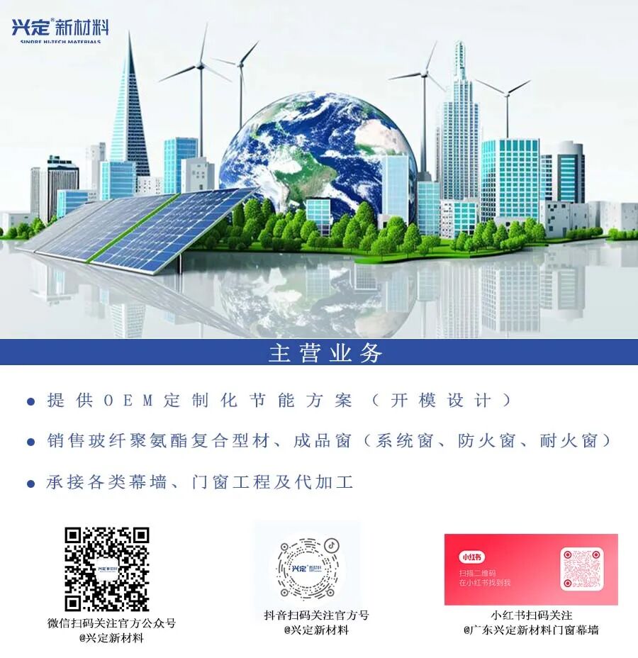 兴定新材料针对这一行业痛点,创新性地将玻纤聚氨酯通过拉挤工艺应用于门窗型材,研发、生产的玻纤聚氨酯复合型材,在强度、节能保温以及防火性能上,比起传统材料PA66实现了全面突破,这一创新成果不仅提升了门窗的整体性能,更为建筑节能和绿色低碳发展提供了强有力的支持。