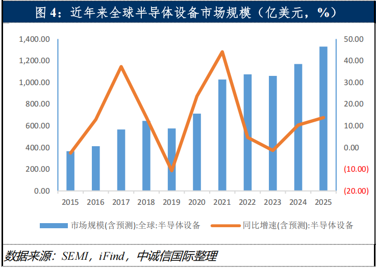 我国已成为全球最大的半导体设备市场,近年来半导体设备在成熟制程方面国产化率有所提升,但与巨大的市场需求相比仍显不足,特别是在光刻胶、离子注入机及先进制程方面差距仍然较大。2025年前三季度,半导体设备企业实现较好增长,但除头部企业外,大量企业产品处于验证阶段,对企业经营业绩产生一定不利影响。