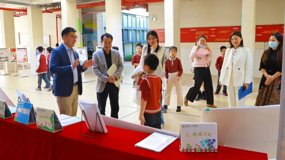 12月19日,桑国元教授与参会嘉宾参观学生项目式学习成果展。