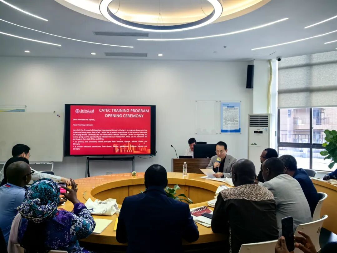 2025年,由北师大教育学部和中非教师教育中心组织的“中非中小学校长交流论坛”在北师大珠海校区举行,孙飞书记主持论坛活动,非洲中小学校长和教师教育研究者参访团来校考察学习。