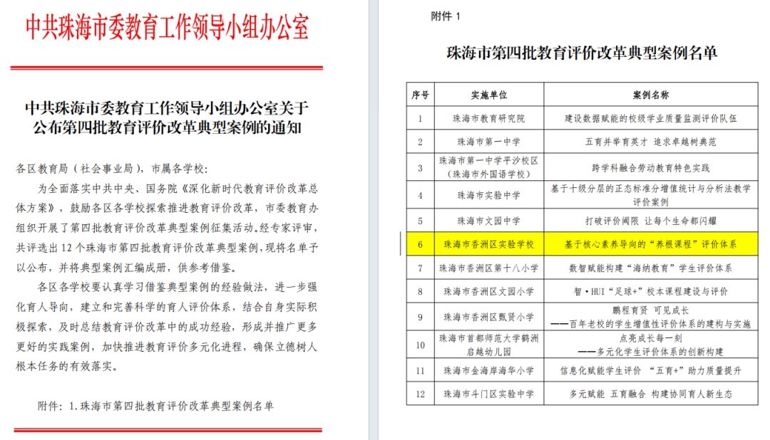 课程评价方案入选珠海市教育评价改革典型案例,课程改革不断深化