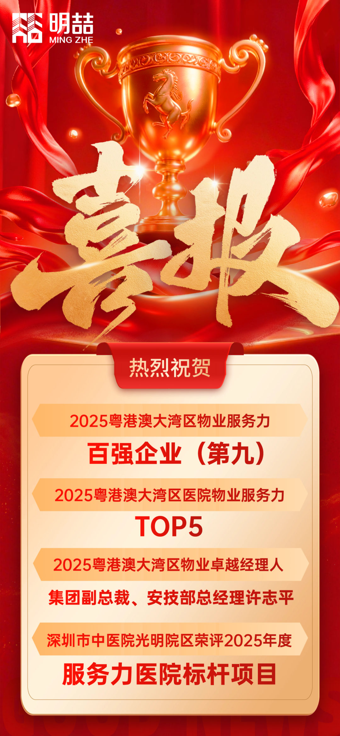 未来,明喆集团将以此次荣誉为起点,全面升级智慧后勤系统,持续聚焦公建物业服务赛道,坚持以高质量为引领,以创新为驱动,输出更多标杆案例、智慧方案与创新模式,为构建物业服务高质量发展新格局贡献明喆力量!