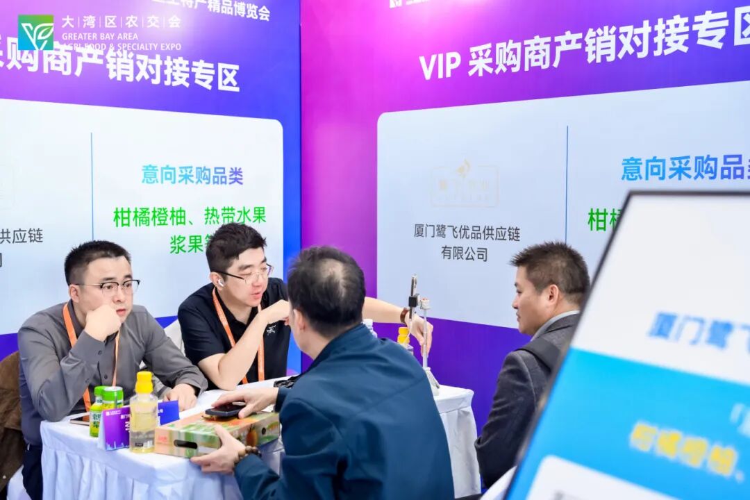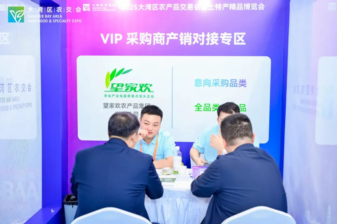 为提升展会实效,本届大湾区农交会在 11.1 馆专设 “大湾区VIP采购商产销对接区”,打造 30 个专业洽谈间,聚焦供需精准匹配。活动特别邀请阿里巴巴(中国)网络技术有限公司、广东中膳健康产业科技有限公司、望家欢农产品集团有限公司、大商集团南方果品 ( 广州 ) 有限公司等 33 家大型采购商及跨境电商平台,与优质供应商开展面对面洽谈。现场达成多项合作意向,涵盖农产品直供、跨境电商入驻、区域代理等多个领域,真正实现 “展商得订单,采商寻好货” 的双赢目标。